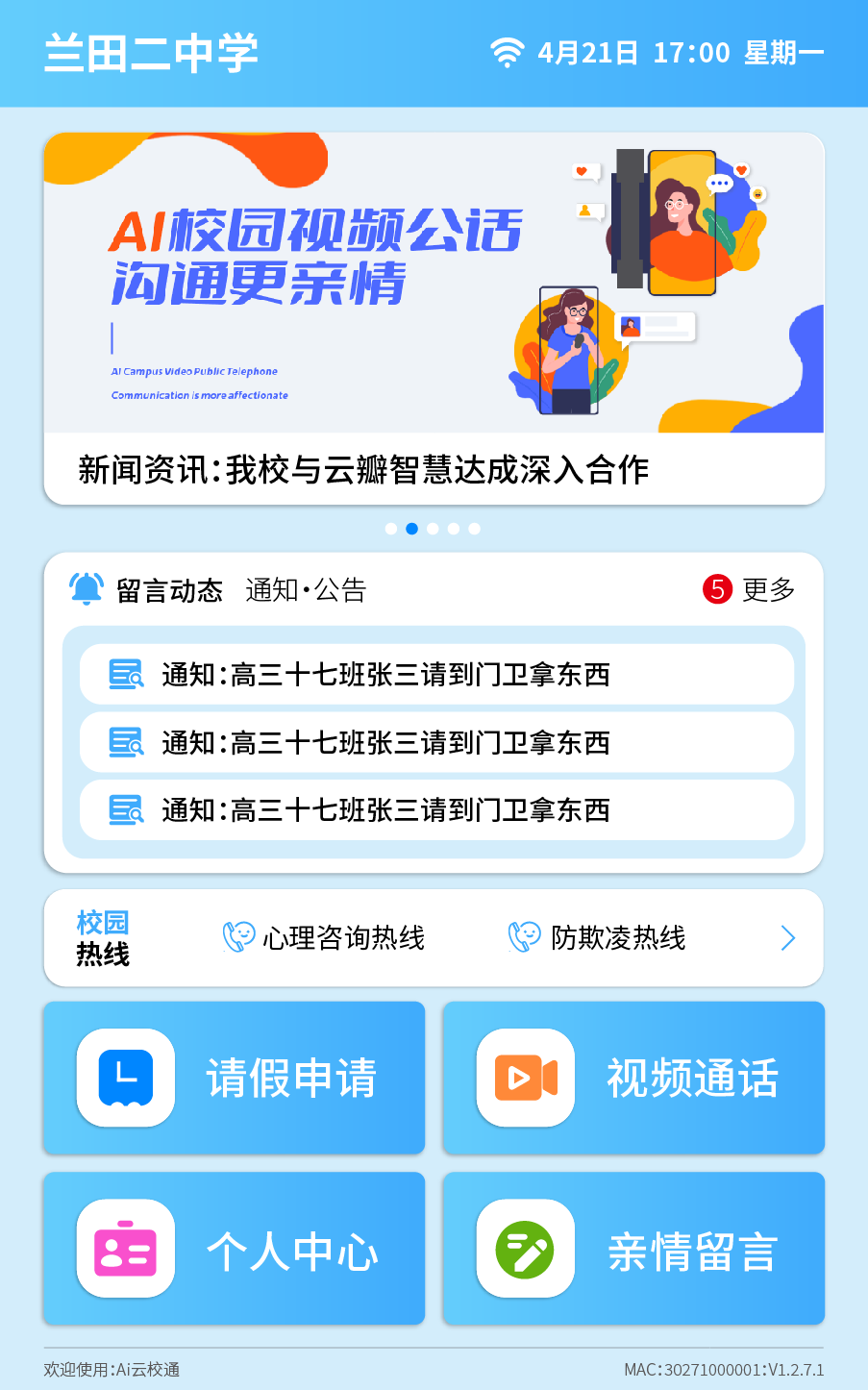 Ai云校通校园APP主要是为了解决学生在校期间与家长沟通的问题,尤其是在手机被禁止的情况下。它们通常具备高清视频通话、人脸识别、考勤打卡、时段管理、防霸凌紧急电话等功能。此外,这些设备还能帮助学校管理学生的作息时间,减少手机使用带来的负面影响,同时促进家校合作和学生心理健康。